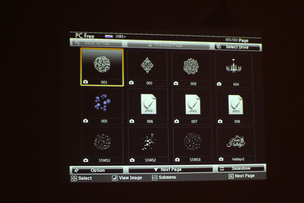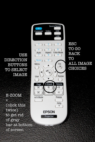 5. Use the remote control navigation buttons (left/right) to select the design you want to project. Click the enter button. (located in the center of navigation buttons).