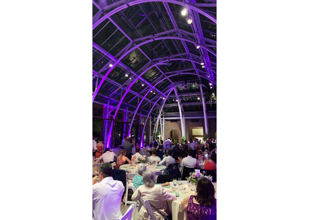 This photo was sent in by DJ Pat McIntyre in Clinton, MA. He rented 14 of the EZPar 56 battery powered lights for a wedding reception at the Tower Hill Botanical Gardens in Boylston, MA.