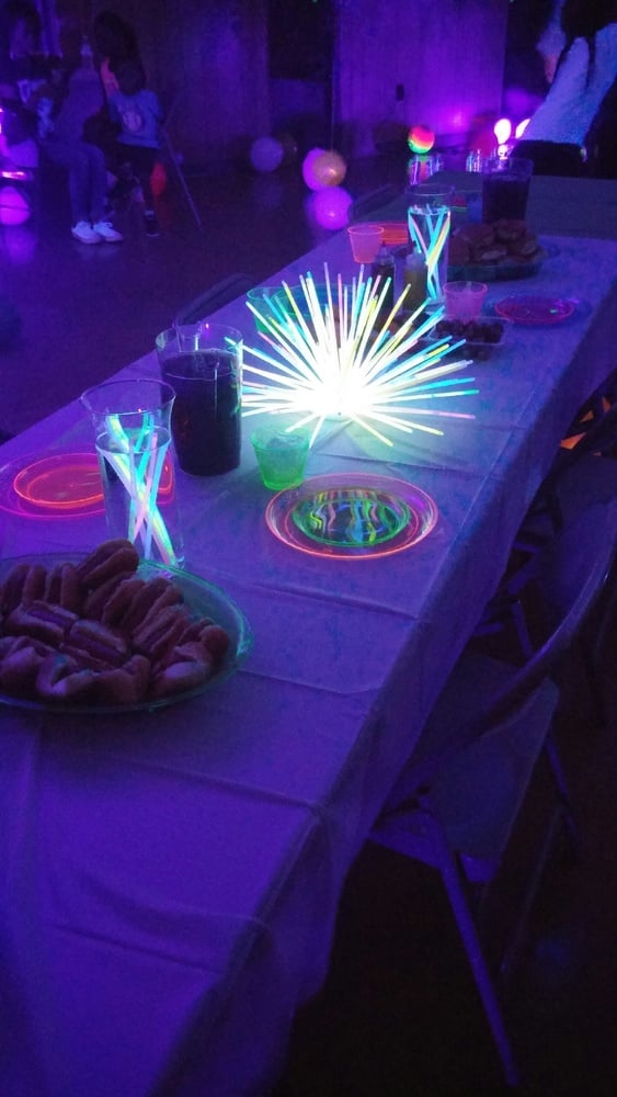 A few photos from Dre's glow birthday party in Norwood, North Carolina. 6 Black Lights were used in their space to create the glow lighting. You can rent them for your party here: Rent black lights