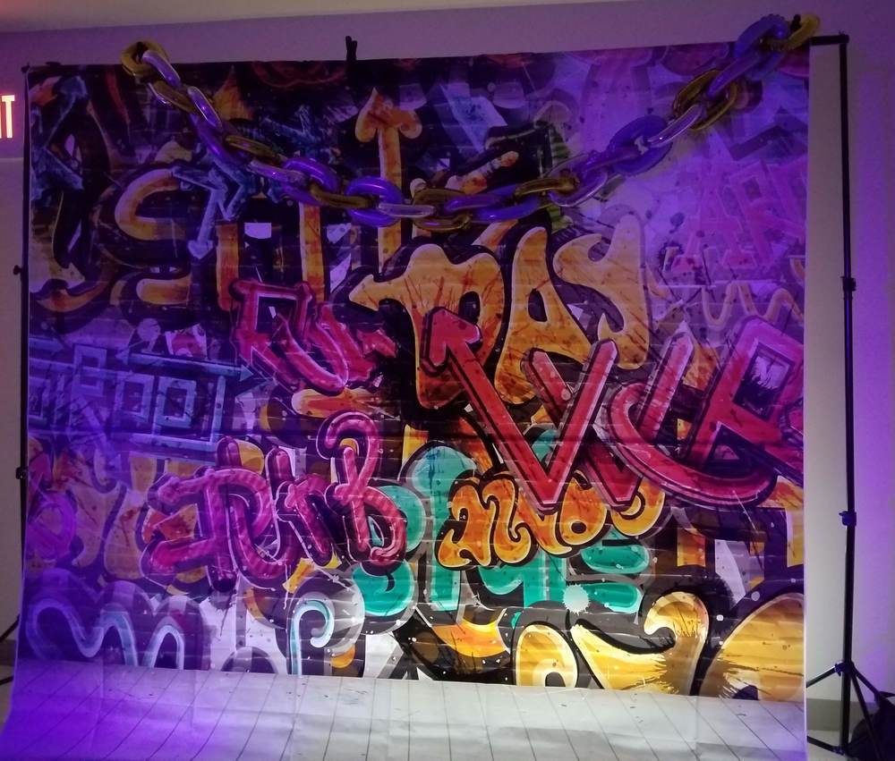 Once you have the black lights hanging, you can tilt and position them to achieve the look you want. Like in these example photos, they used a few units to light a photo backdrop, another few units to shine some glow on their tables, and then a couple more for the dance floor. You can get creative with your glow in the dark effect.